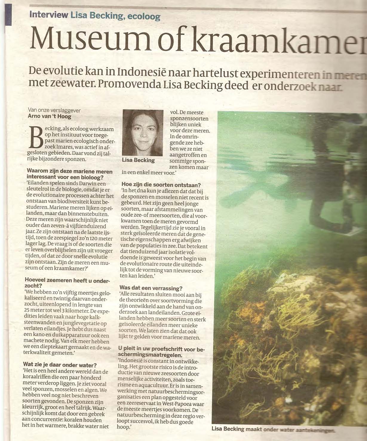 Leisdch Dagblad, 16 January 2013, "Naar het binnenste buiten eiland"