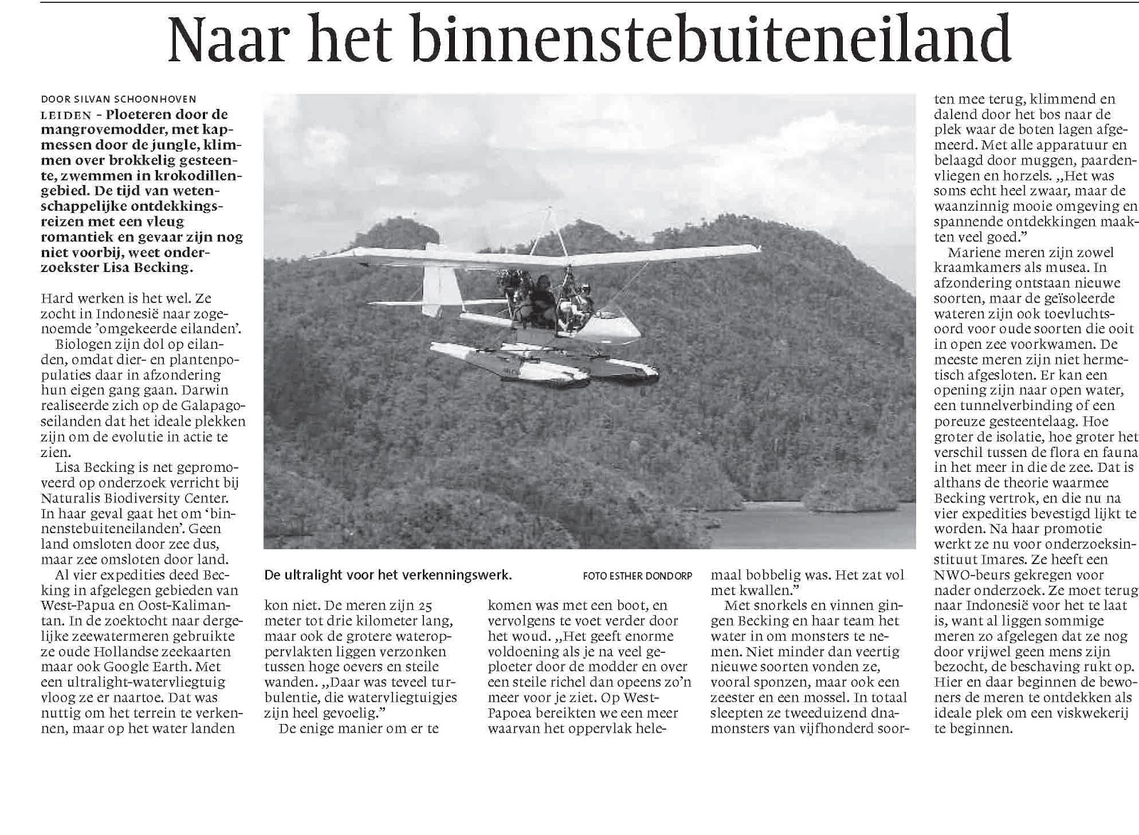 Leisdch Dagblad, 16 January 2013, "Naar het binnenste buiten eiland"